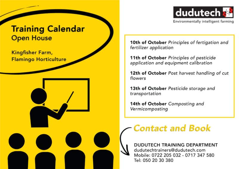Dudutech is offering a variety of courses this October from the 10th- 14th of October. Each day we are providing a different course for you to choose from. For any price inquiries please contact dudutechtrainers@dudutech.com and confirm your booking