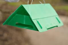 These traps are available in green, yellow and white coryx (plastic) with colour dependent on the target pest. This trap comes with a wire for suspension. The Delta Traps are used in conjunction with white sticky liners and pherolures.